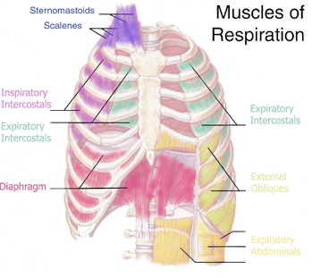 People who breathe well are persuasive speakers, calm leaders and generally healthy people because they use their primary muscles of respiration – which are lower, in your belly. These are the abdominal muscles (your abs) and the diaphragm and, to a lesser extent but of vital importance, the pelvic floor. These muscles are capable of working for extended periods of time without cramping, because they are designed to – and bathe in fresh blood while they work.